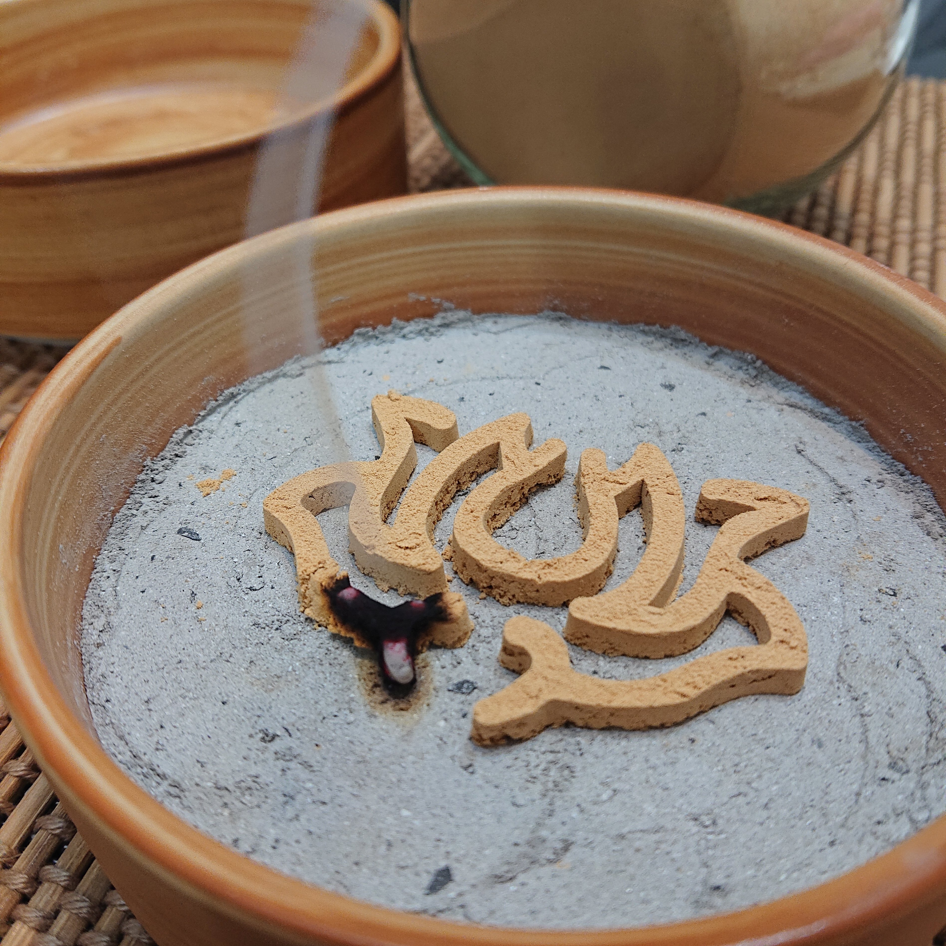 2⃣把香篆模輕輕放在平整的香灰上,用手食指在香篆頂端輕輕壓一下。